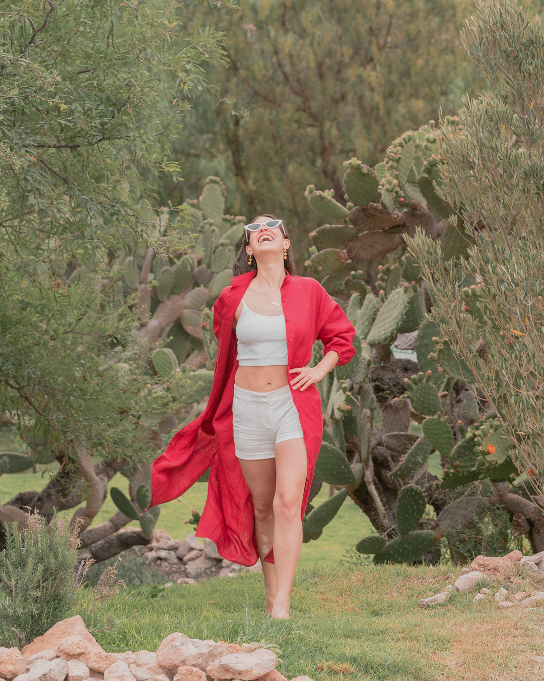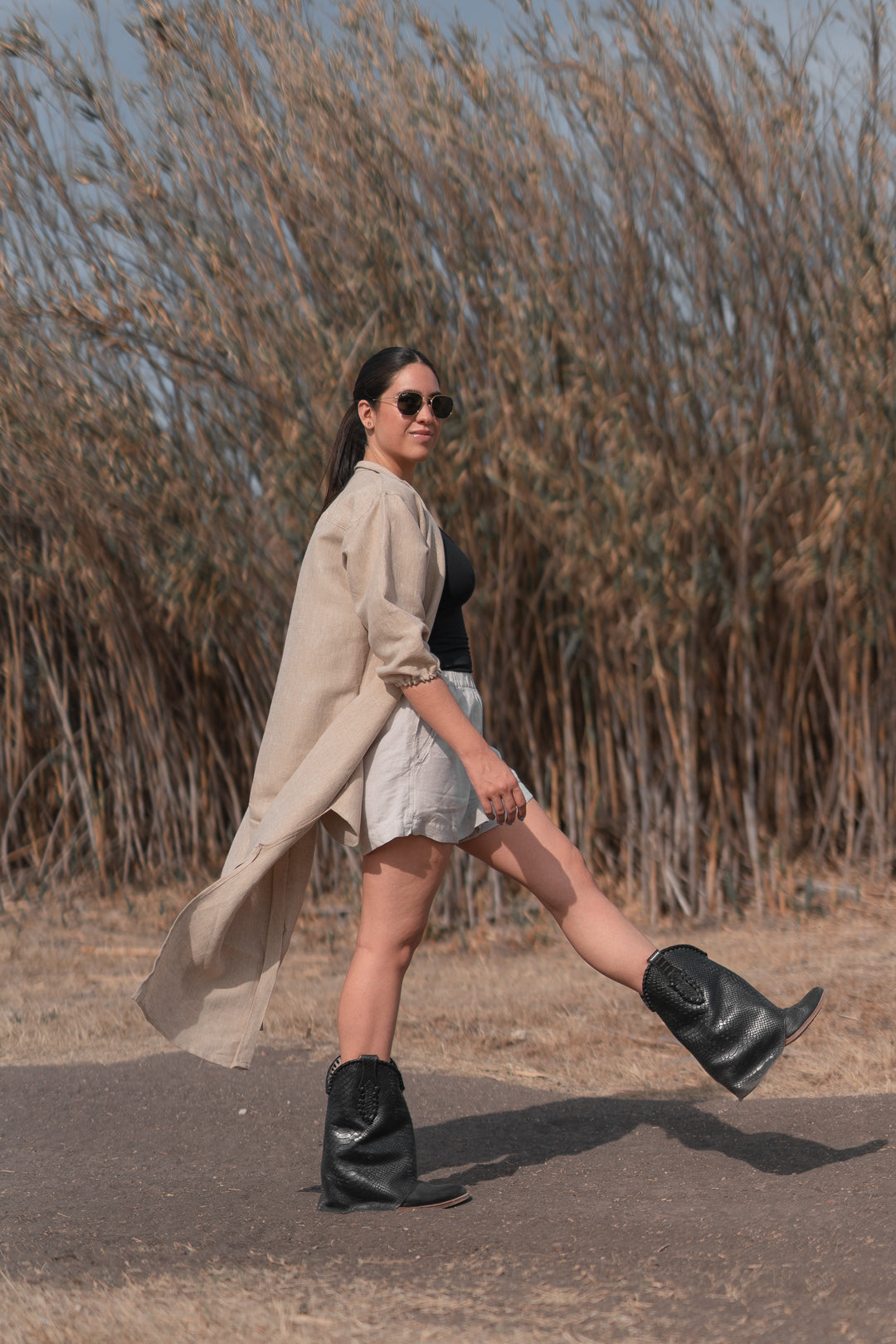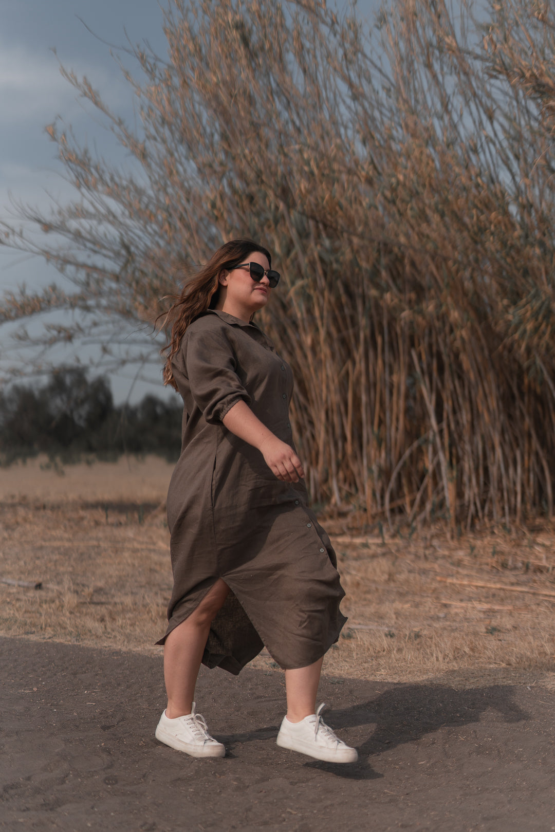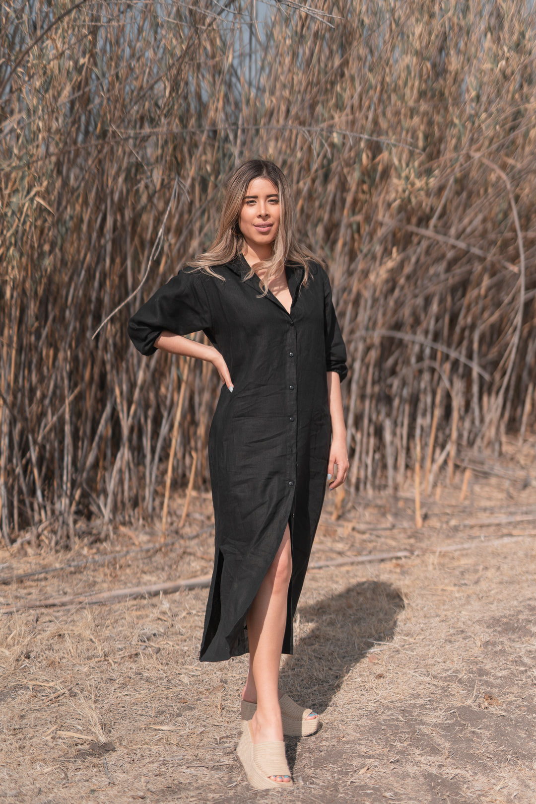 Crafted with meticulous attention to detail, our exquisitely designed kaftan exudes elegance and sophistication. Adorned with delicate front buttons, it boasts a flattering midi-length silhouette, complete with convenient side pockets. The distinguished Mandarin collar adds a touch of refinement, while the graceful three-quarter sleeves provide an air of grace. Fashioned from the finest linen or cotton fabric, each stitch embodies luxury and comfort, making it an essential addition to any discerning wardrobe