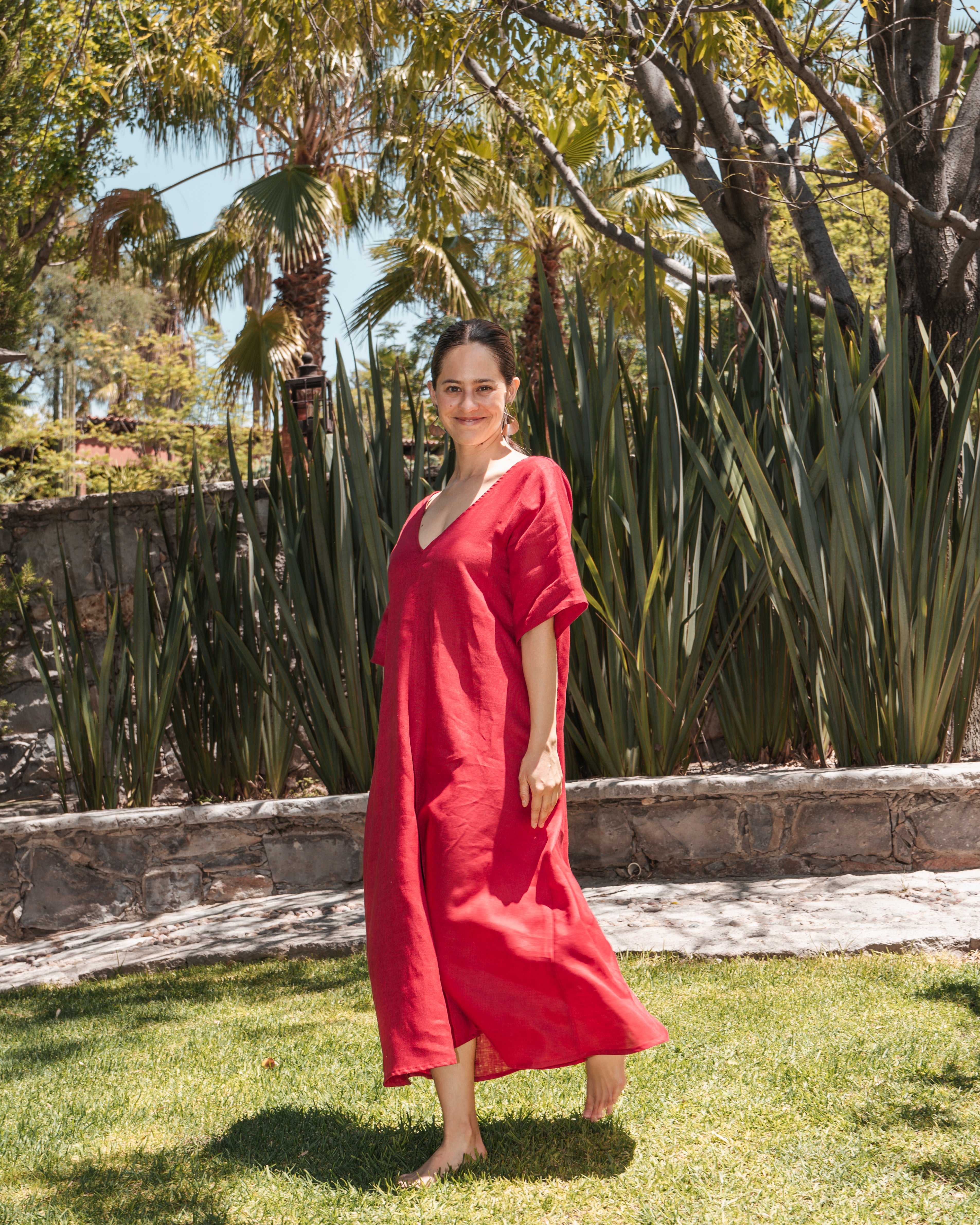 Embrace sheer elegance with our 'V-Neck Short Sleeve Dress', featuring generous short sleeves and convenient side pockets. With a captivating open back design, this dress exudes effortless allure. Crafted from premium linen fabric, it epitomizes luxury and refinement.
